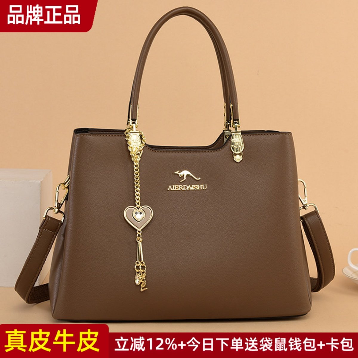 袋鼠真皮女包手提包新款高级感大气中年妈妈通勤包送老婆生日礼物