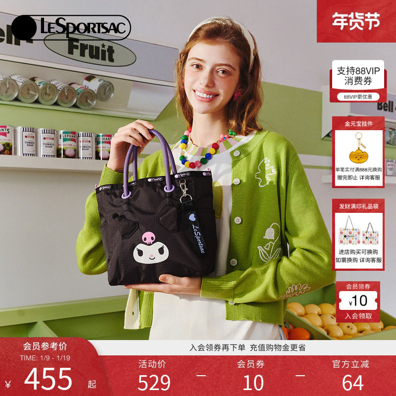 LeSportsac乐播诗新款包包酷洛米休闲黑色双面托特包女包手提包