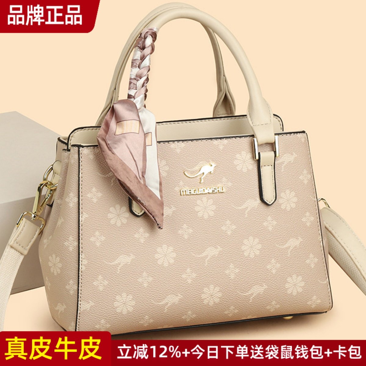 袋鼠真皮女包手提包女包包女式2025新款妈妈包斜挎单肩包软牛皮