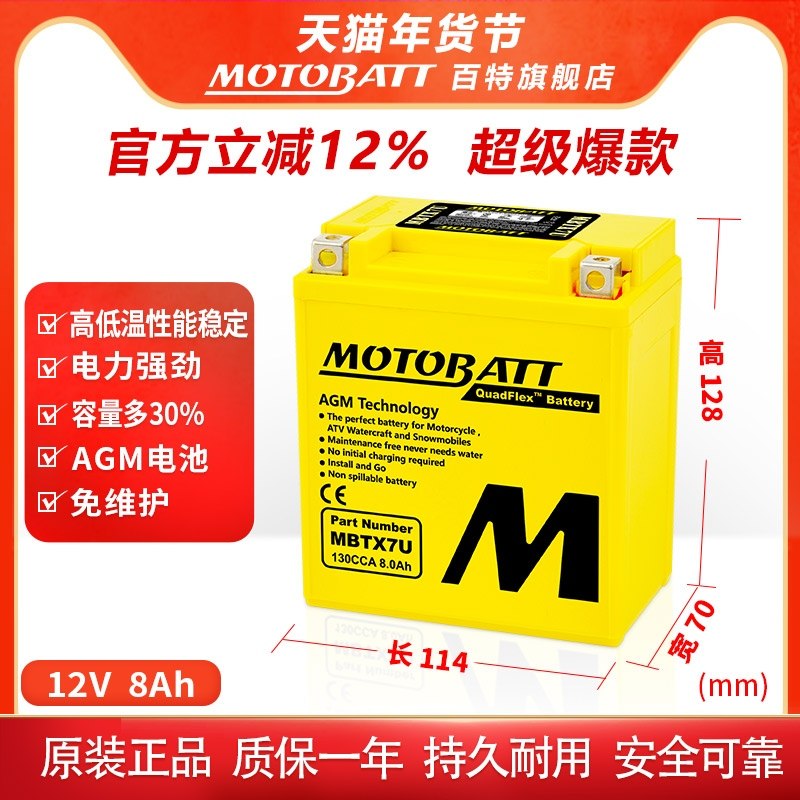 百特摩托车电瓶12V通用本田宝马春风哈雷贝纳利杜卡迪原装大容量