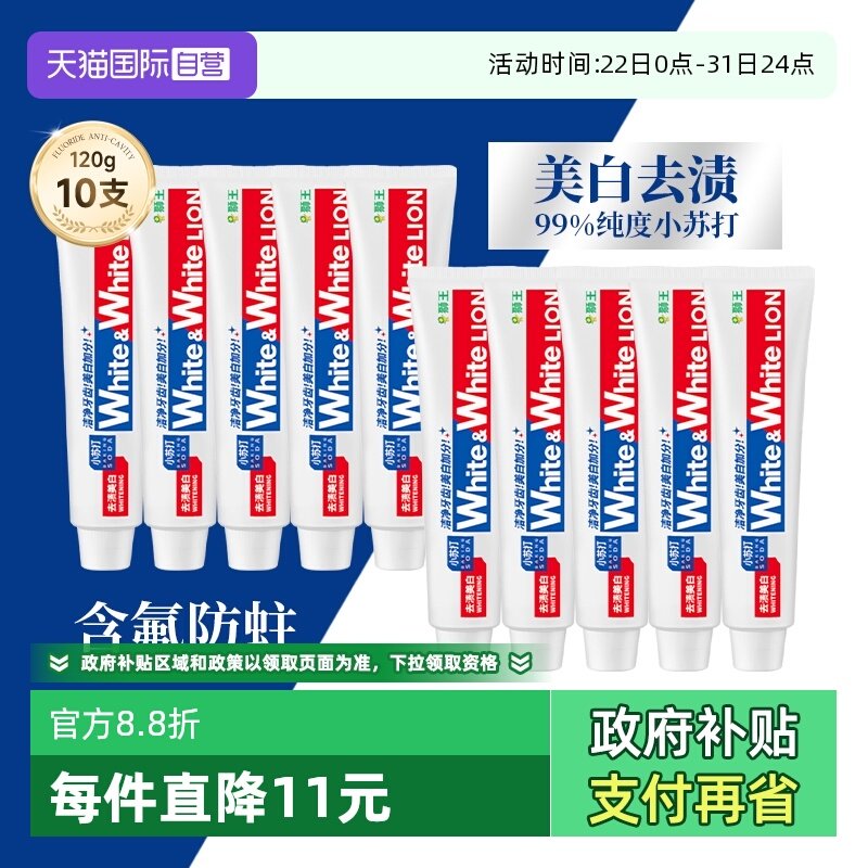 【自营】LION狮王牙膏10支大白葡萄柚小苏打去黄美白防蛀清新120g