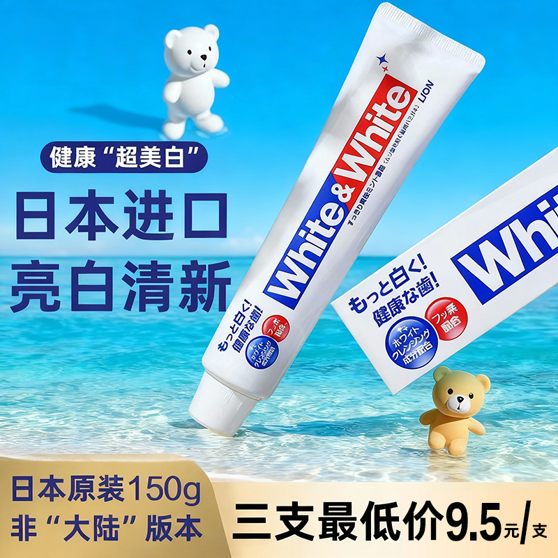 狮王牙膏日本进口大白牙膏成人含氟防蛀White女生清新口气150g/支