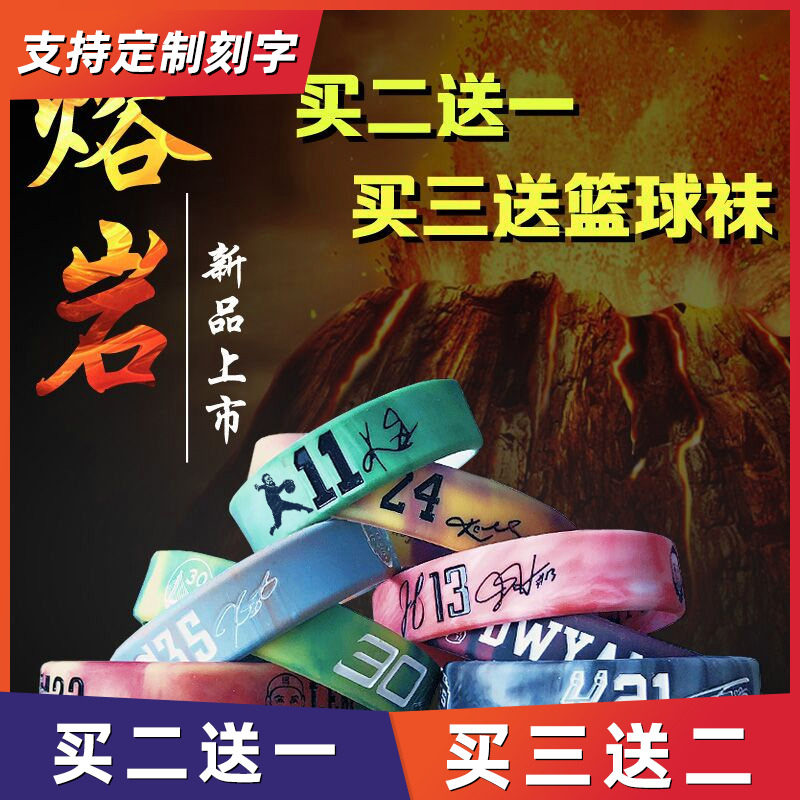 球星熔岩迷彩混色运动手环带硅胶夜光篮球腕带情侣定制手环大小号