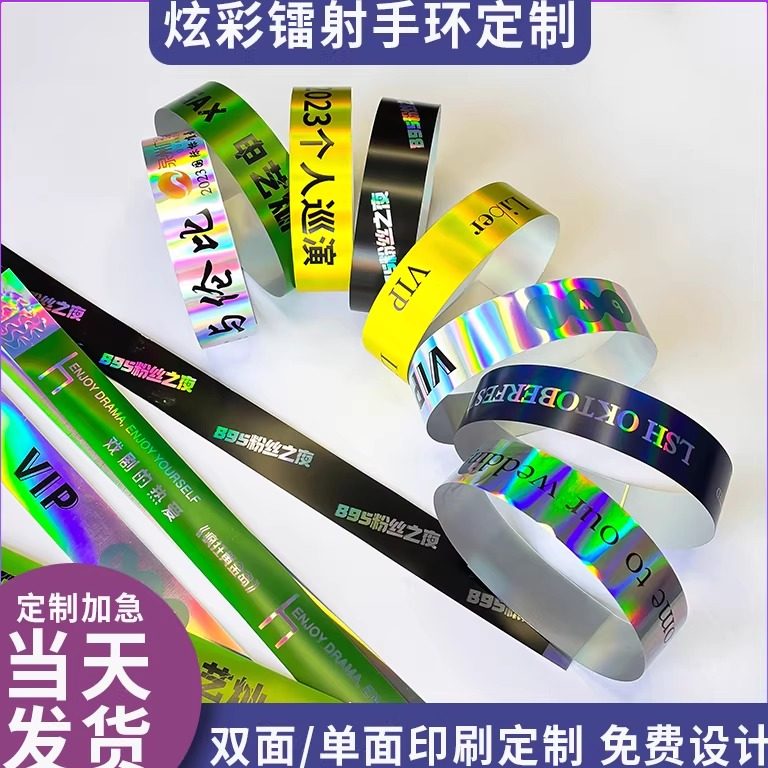 手环定制炫彩镭射一次性手腕带会议门票防水识别手带反光酒吧夜场