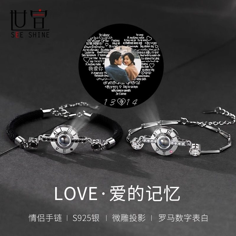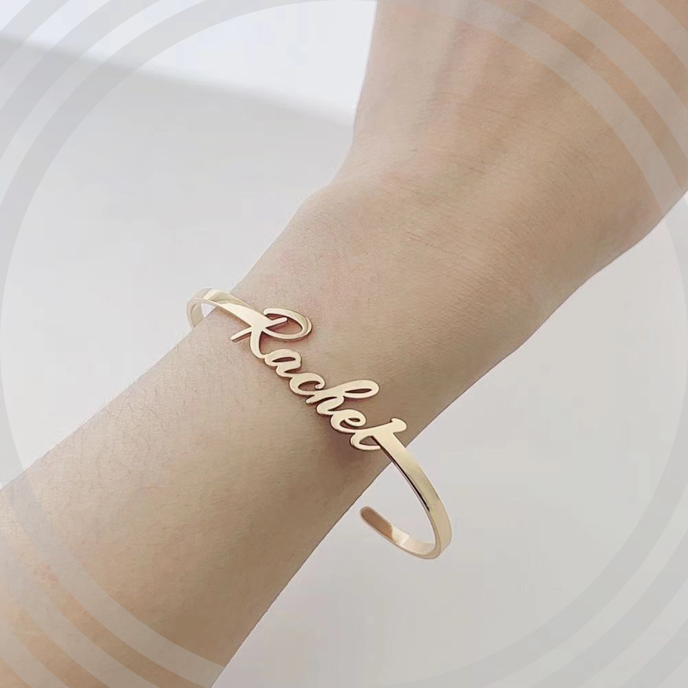 S925纯银手镯定制手环女字母刻字名字手工情人节生日礼物不锈钢