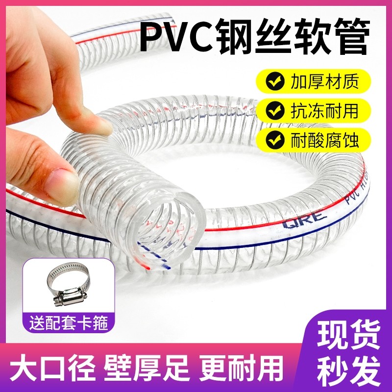 钢丝软管pvc透明加厚高温塑料50管水管抽油管子高压1/2/3寸钢丝管