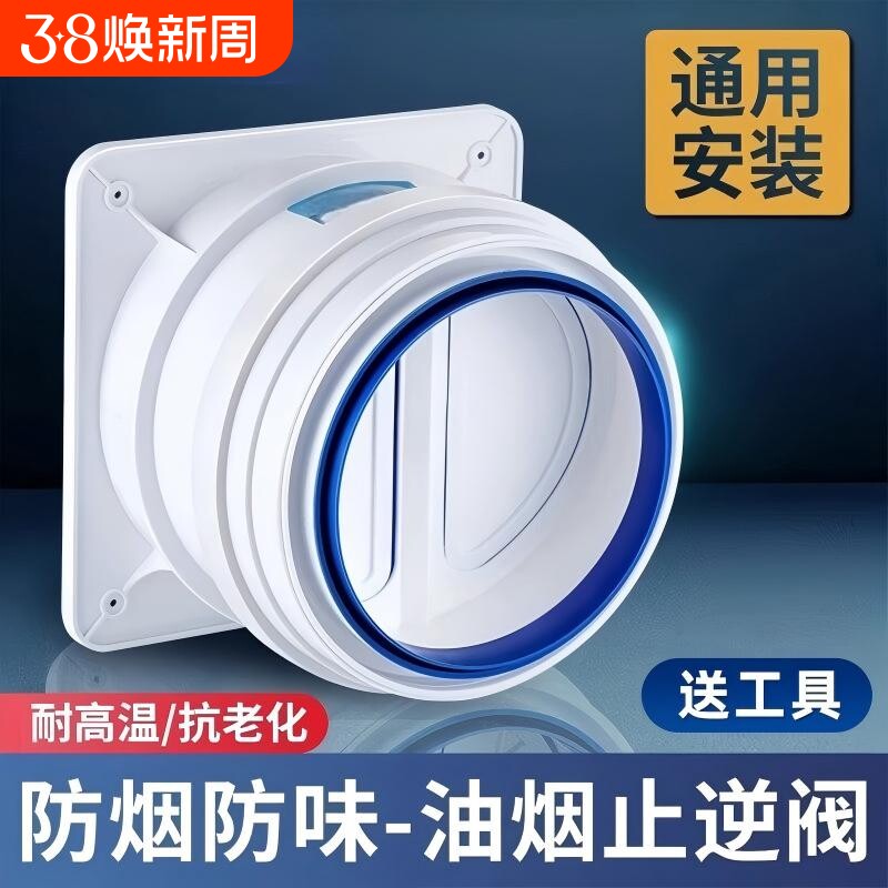 油烟机止逆阀厨房烟道止回阀专用排烟管单向止烟卫生间变径防烟宝