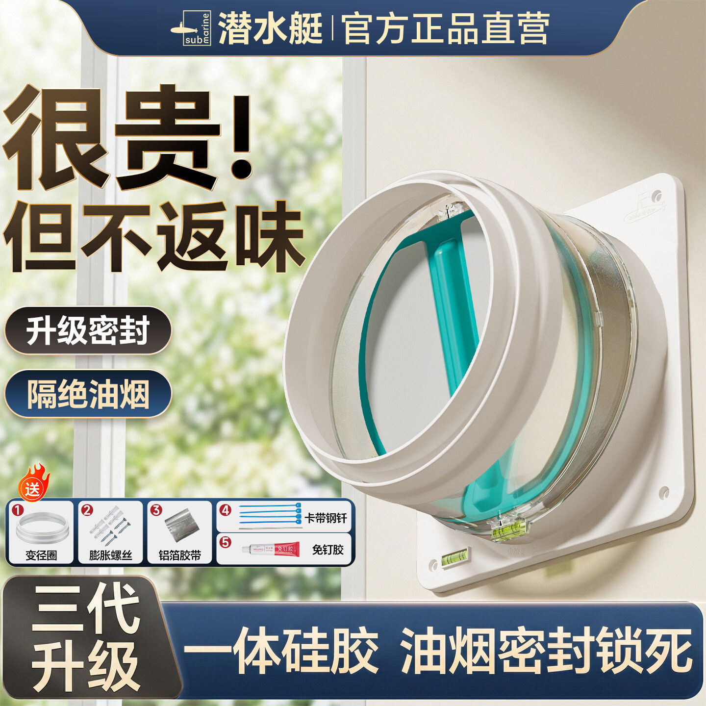 潜水艇抽油烟机止逆阀厨房烟道卫生间出风口专用止回阀官方旗舰店
