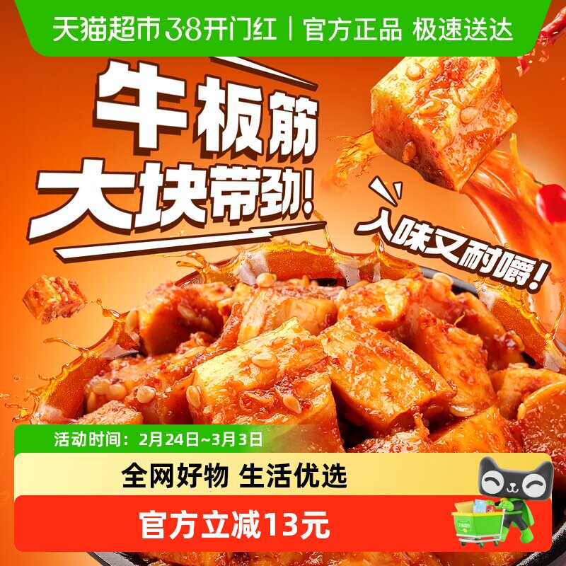 齐晶牛板筋湖南特产麻辣牛肉干辣条小零食小吃小包装熟食牛筋辣味