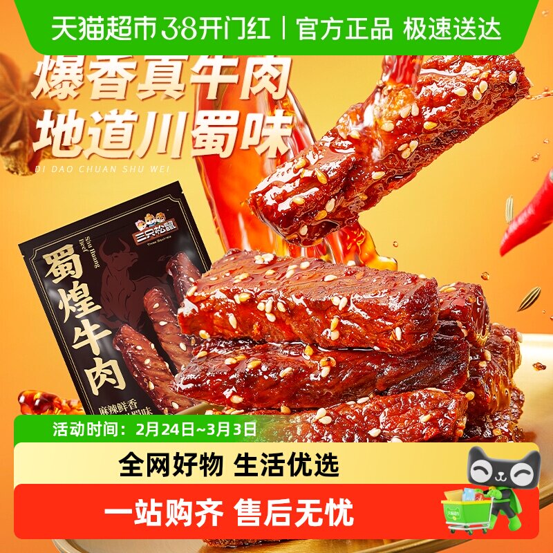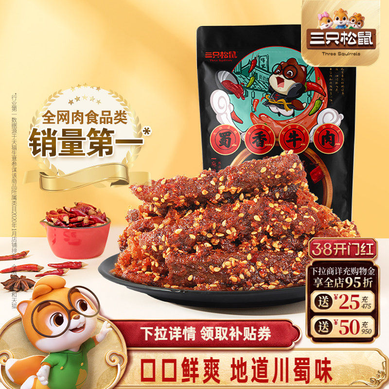 三只松鼠_蜀香牛肉熟食零食大礼包麻辣牛肉干特产解馋小零食小吃