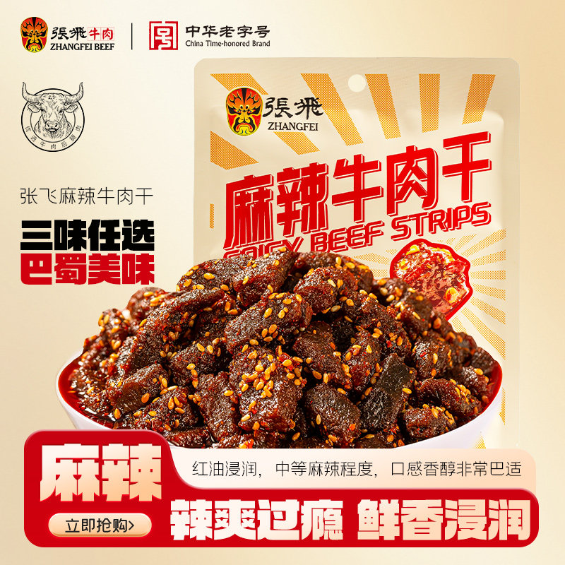 张飞麻辣牛肉干四川成都特产宿舍囤货追剧耐吃解馋小零食100g*3袋