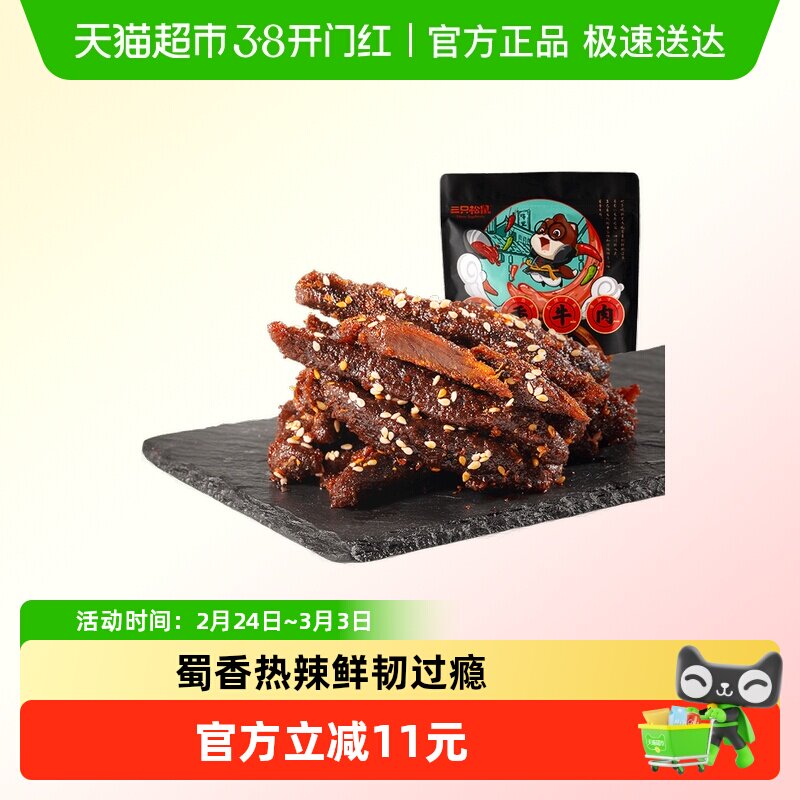 三只松鼠牛肉干蜀香牛肉麻辣味100g*1袋零食解馋熟食特产小吃