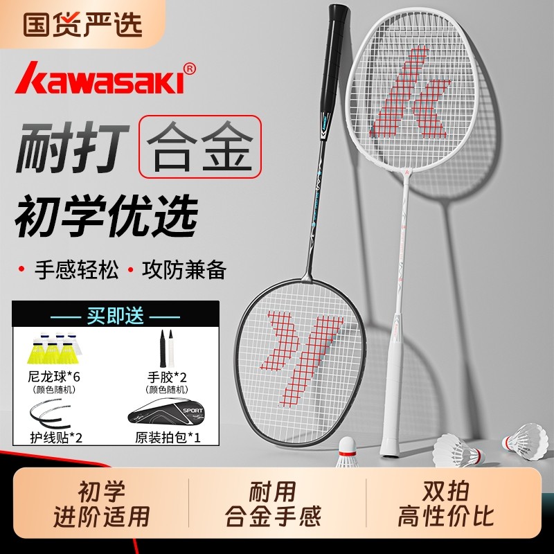 川崎羽毛球拍官方正品高弹力学生训练专用情侣轻量碳素耐打单双拍