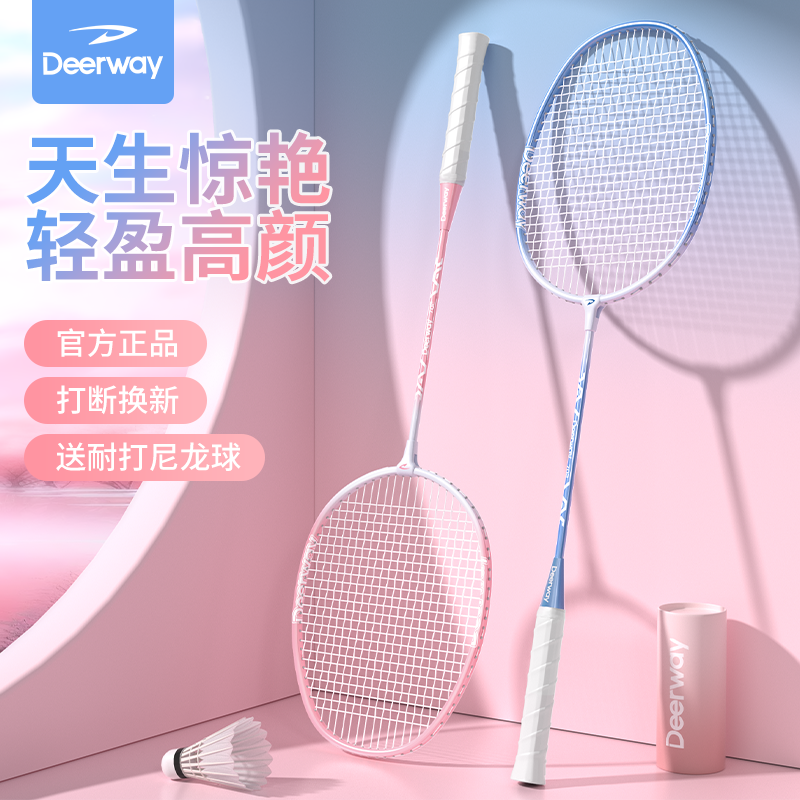 德尔惠羽毛球拍正品全碳素纤维成人儿童超轻耐打专业双拍情侣套装
