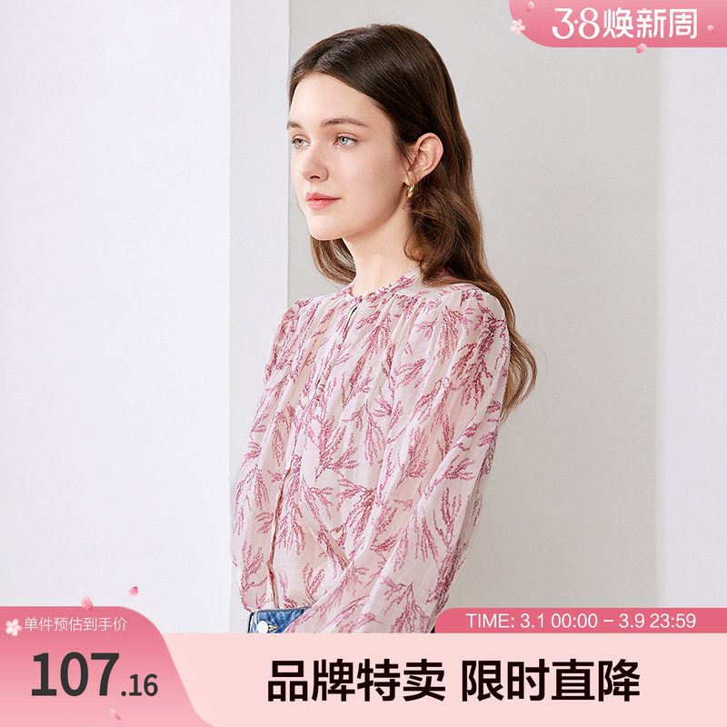 betu百图气质名媛印花衬衫新款款时尚印花韩版气质灯笼袖衬衫女