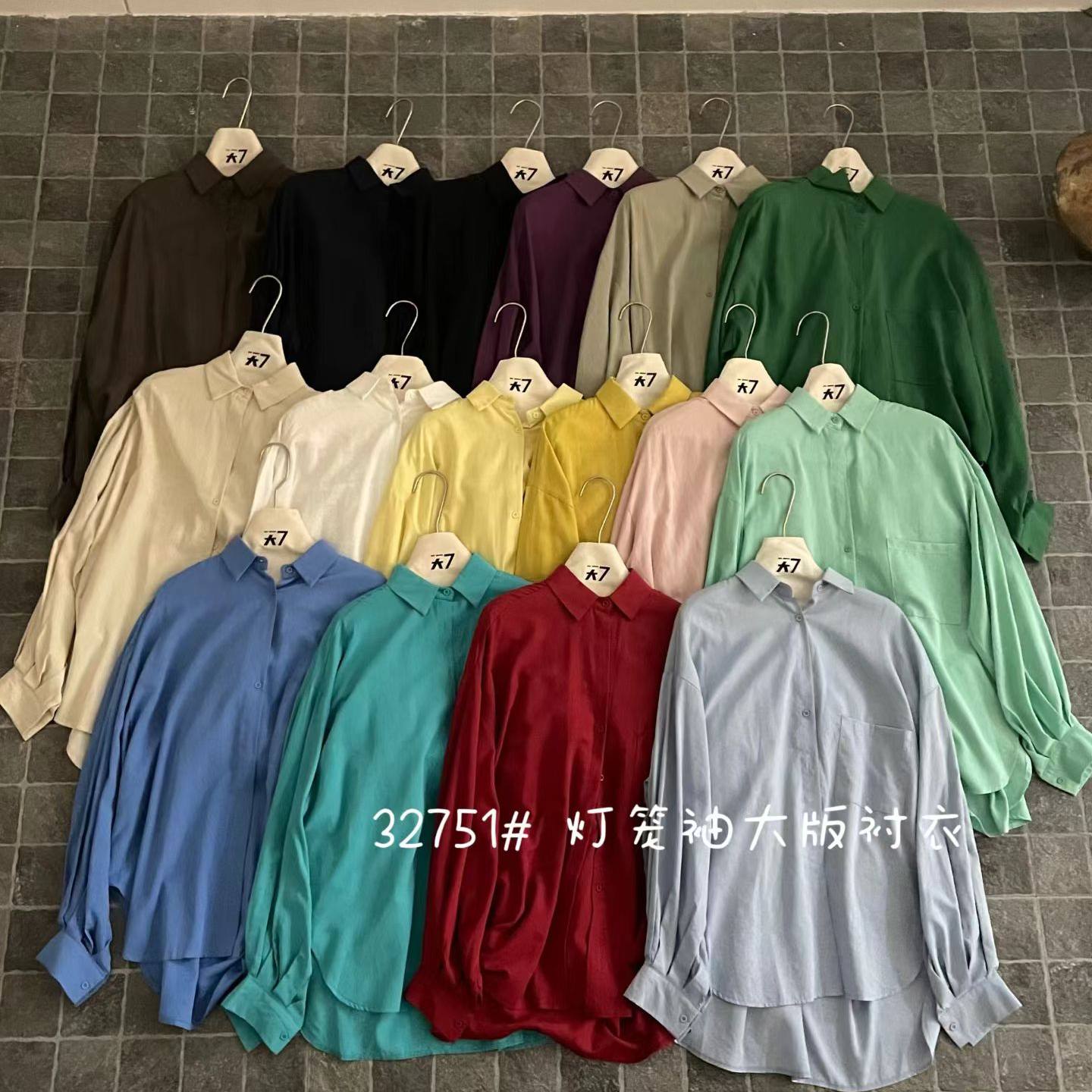 大7女32751春季新款韩版宽松大码胖mm休闲慵懒风灯笼长袖衬衫上衣