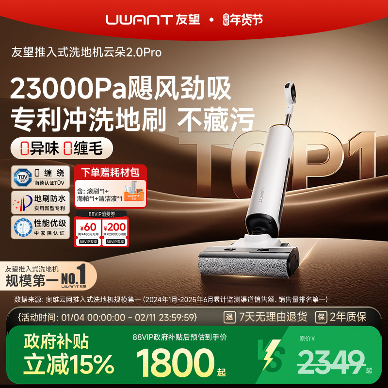UWANT友望云朵2.0Pro洗地机推入式扫地吸拖一体机自清洁自动清洗