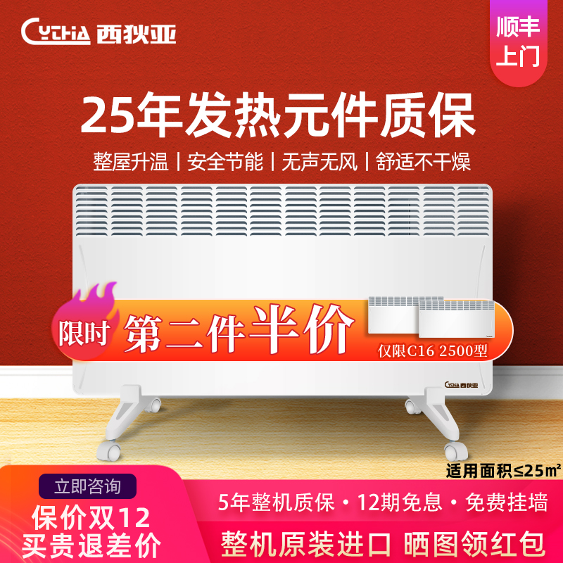 西狄亚CYTHA欧洲进口电暖器全屋升温取暖器家用静音节能壁挂浴室