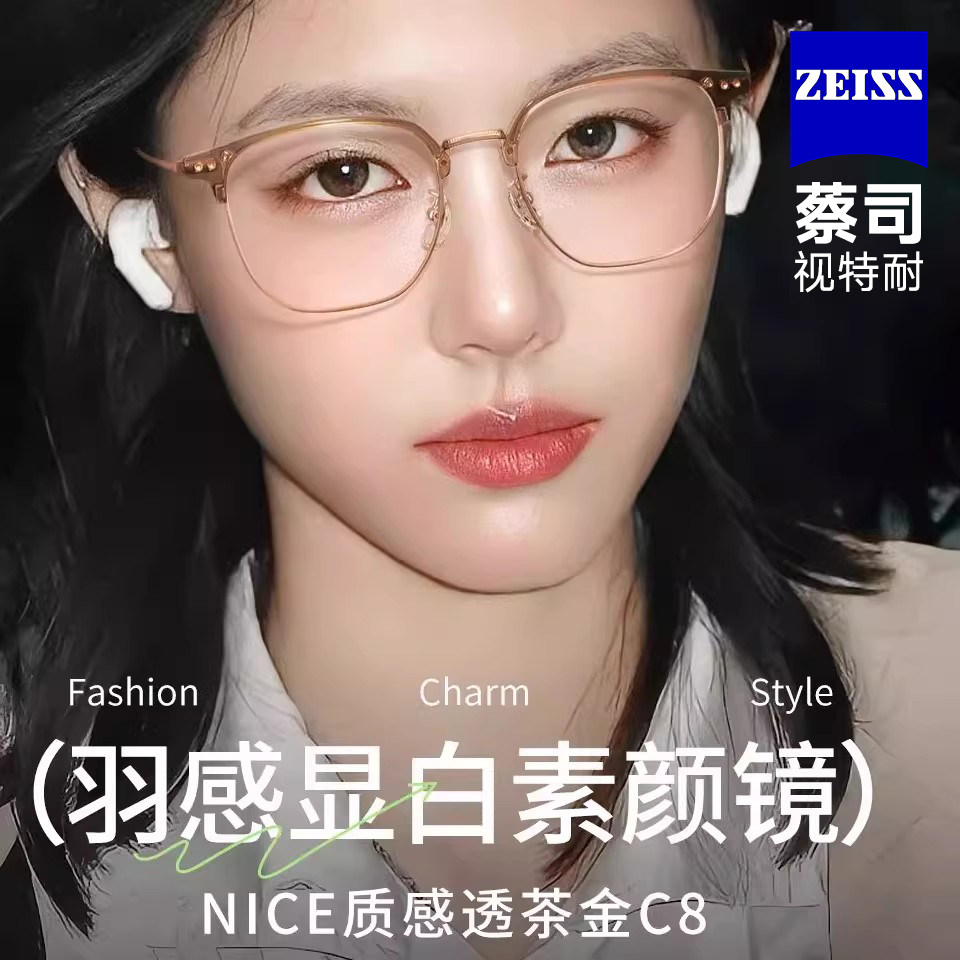 蔡司眼镜女超轻钛架椭圆形眼镜框男女可配度数防蓝光近视25341