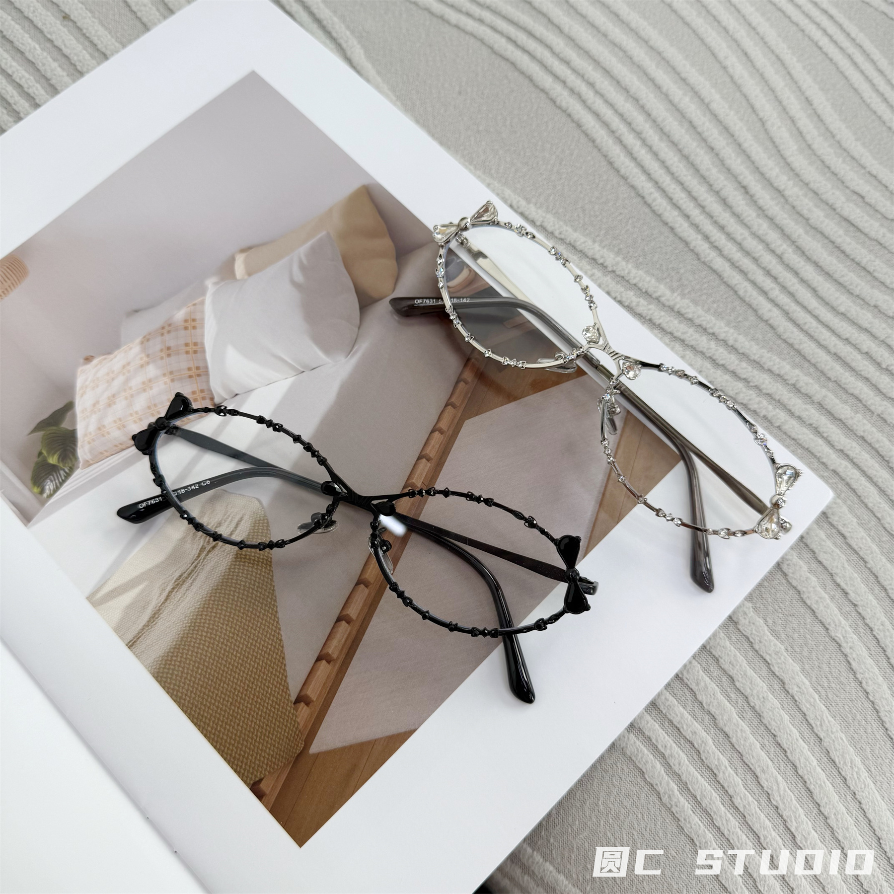 韩版个性猫眼镶钻椭圆形眼镜框女y2k辣妹凹造型素颜可配度数平光