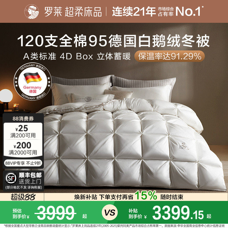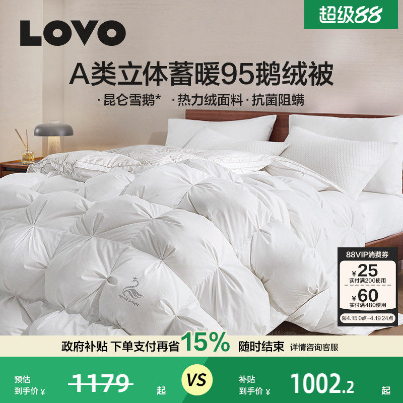 罗莱家纺LOVO羽绒被95白鹅绒被子被芯加厚冬被四季通用100支全棉