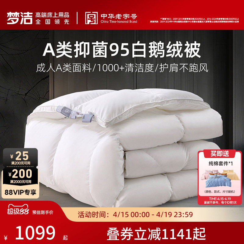 梦洁羽绒被子95白鹅绒被芯春秋被抗菌高蓬松冬被保暖加厚结婚送礼