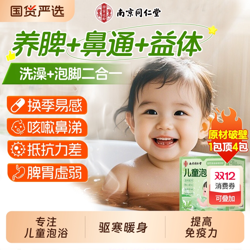 南京同仁堂儿童泡澡药包婴儿鼻塞咳嗽积食调理脾胃艾草叶足药浴包