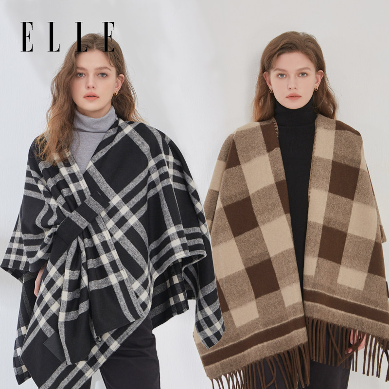 ELLE披肩女士秋冬季户外办公室保暖时尚百搭针织斗篷围巾外搭围巾
