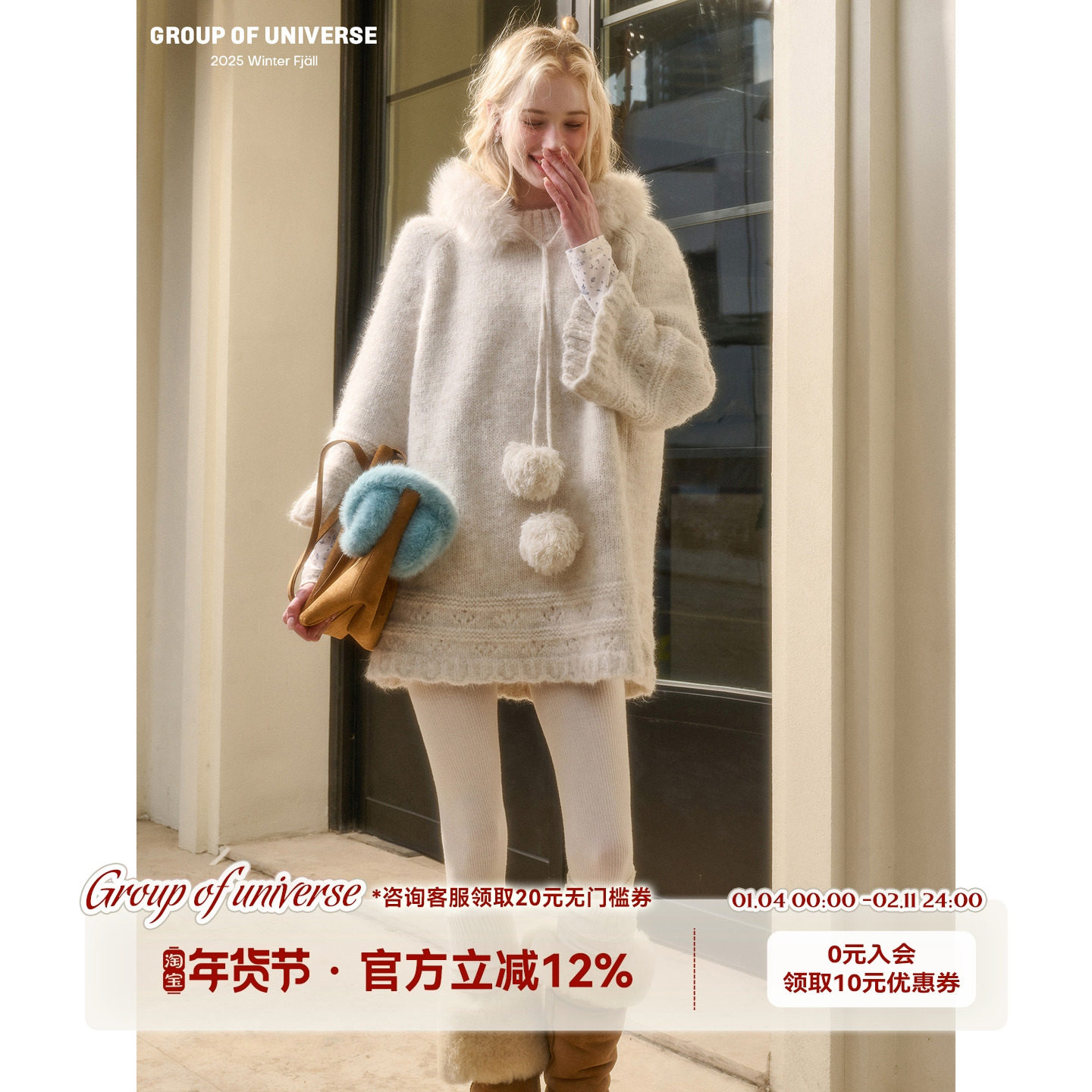 银河万岁“美好”厚绒绒羊毛织物「针织斗篷裙」优雅连帽针织衫女