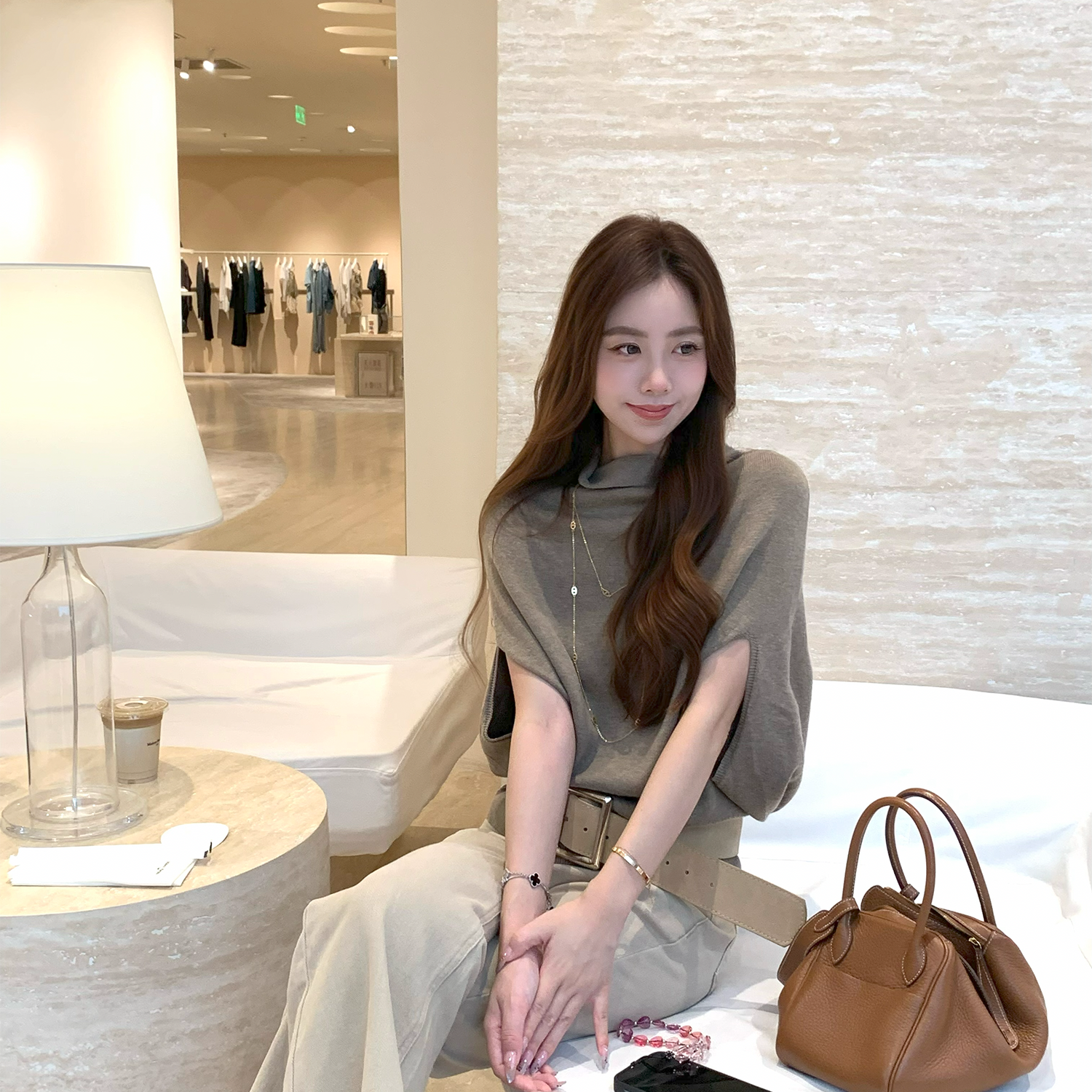 Baby61【高智姐感】无缝一体慵懒蝙蝠袖羊毛针织斗篷式上衣