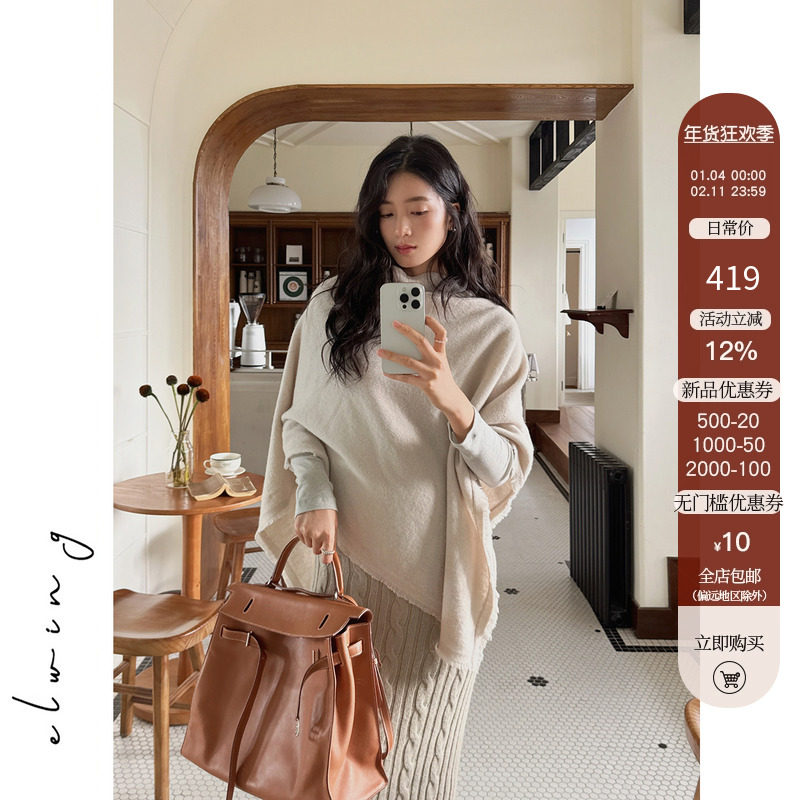 臻缦绒【随性小调调】山羊绒针织斗篷式披肩上衣女 宽松慵懒松弛