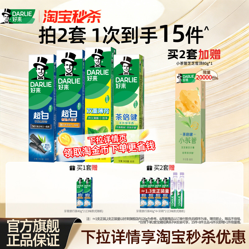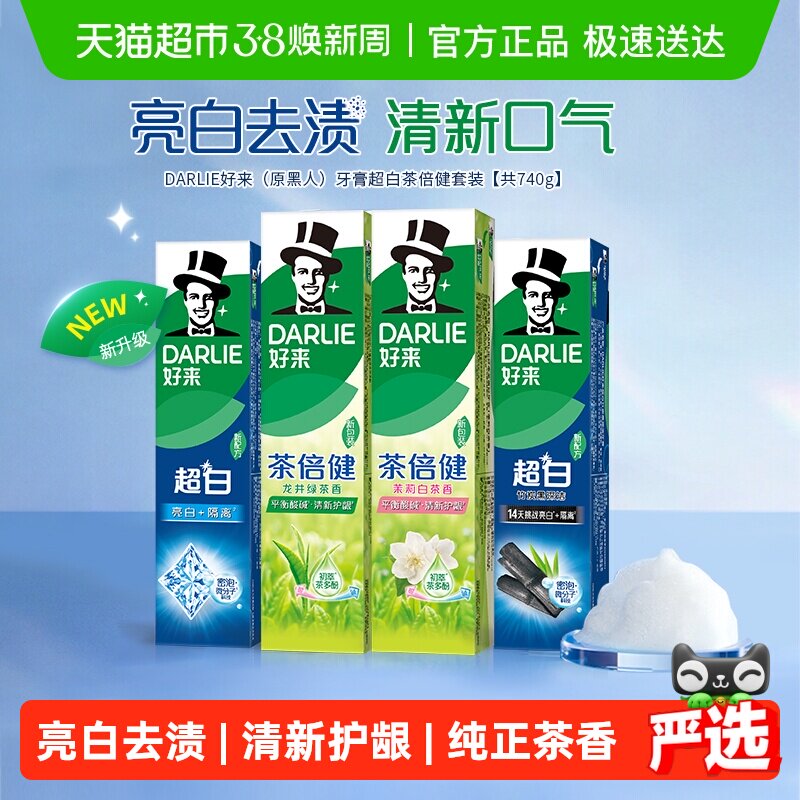 DARLIE好来原黑人牙膏超白茶倍健套装740g亮白牙齿去牙渍清新口气