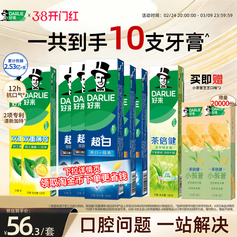 DARLIE好来黑人牙膏超白茶倍健薄双重荷含氟清新口气官方旗舰正品