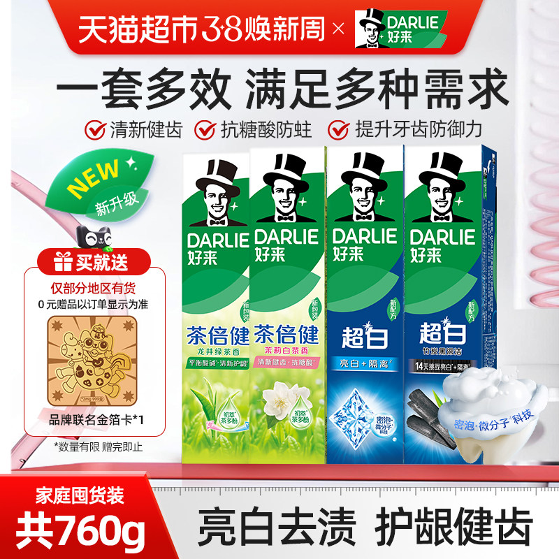 DARLIE好来(原黑人)牙膏超白茶家庭家用套装190g*4支洁齿清新亮齿