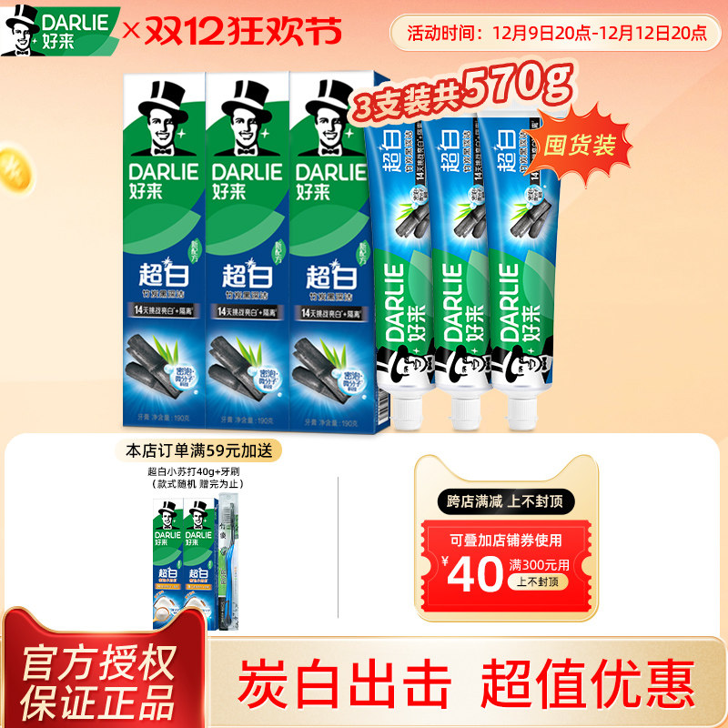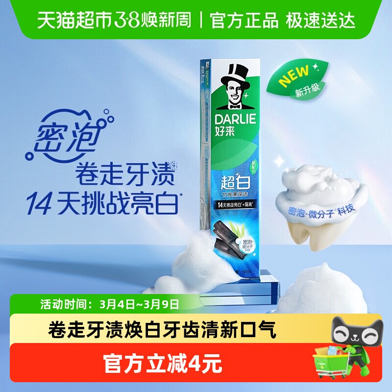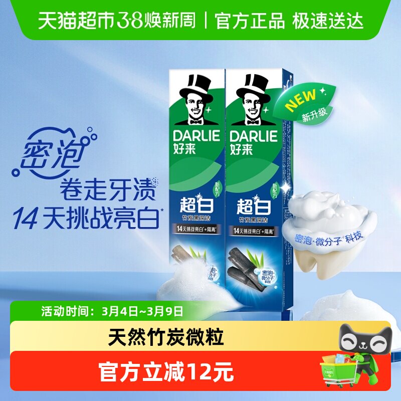 DARLIE好来原黑人牙膏超白竹炭清新口气去黄牙护龈含氟官方旗舰店