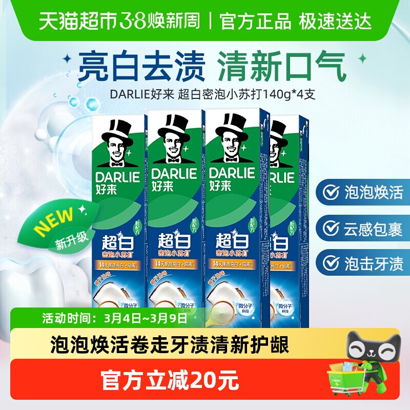 DARLIE好来原黑人超白小苏打牙膏清新口气含氟旗舰店官方正品