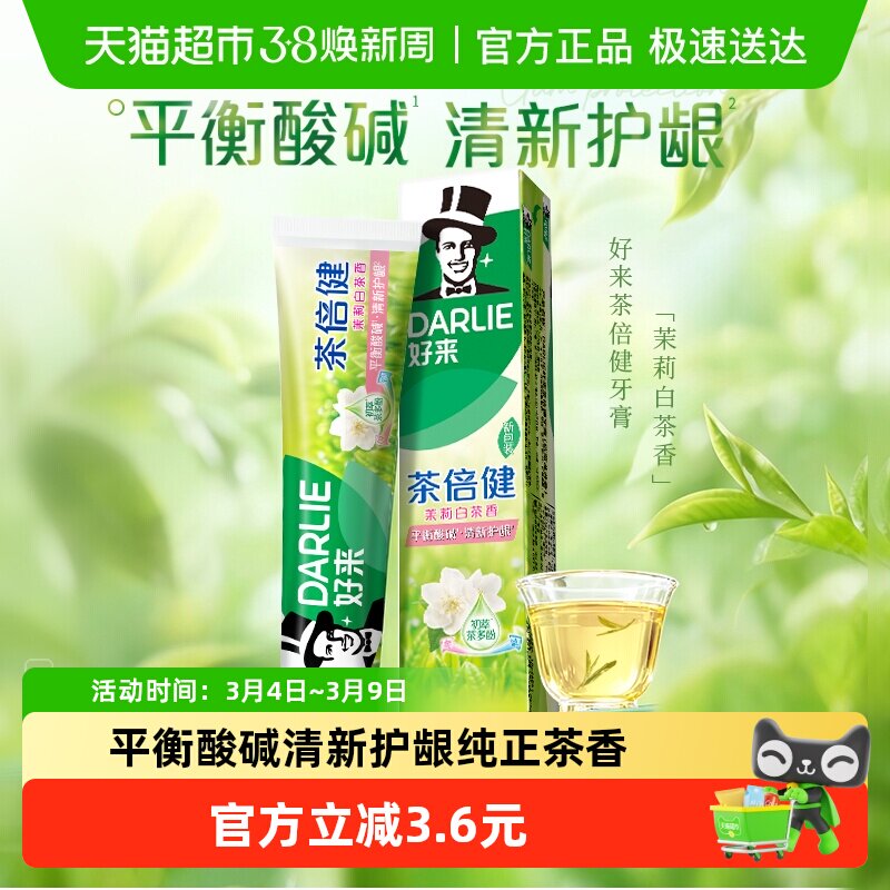 DARLIE好来(原黑人)牙膏茶倍健茉莉白茶护龈亮齿去渍140g