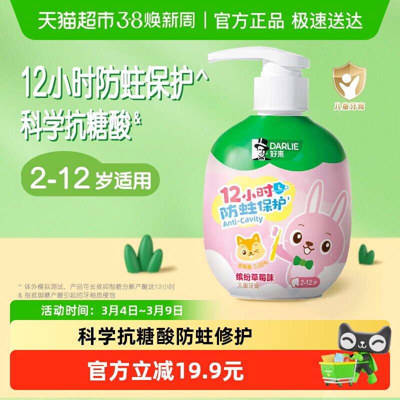 DARLIE好来(原黑人)按压式儿童牙膏草莓味2-12岁换牙期含氟