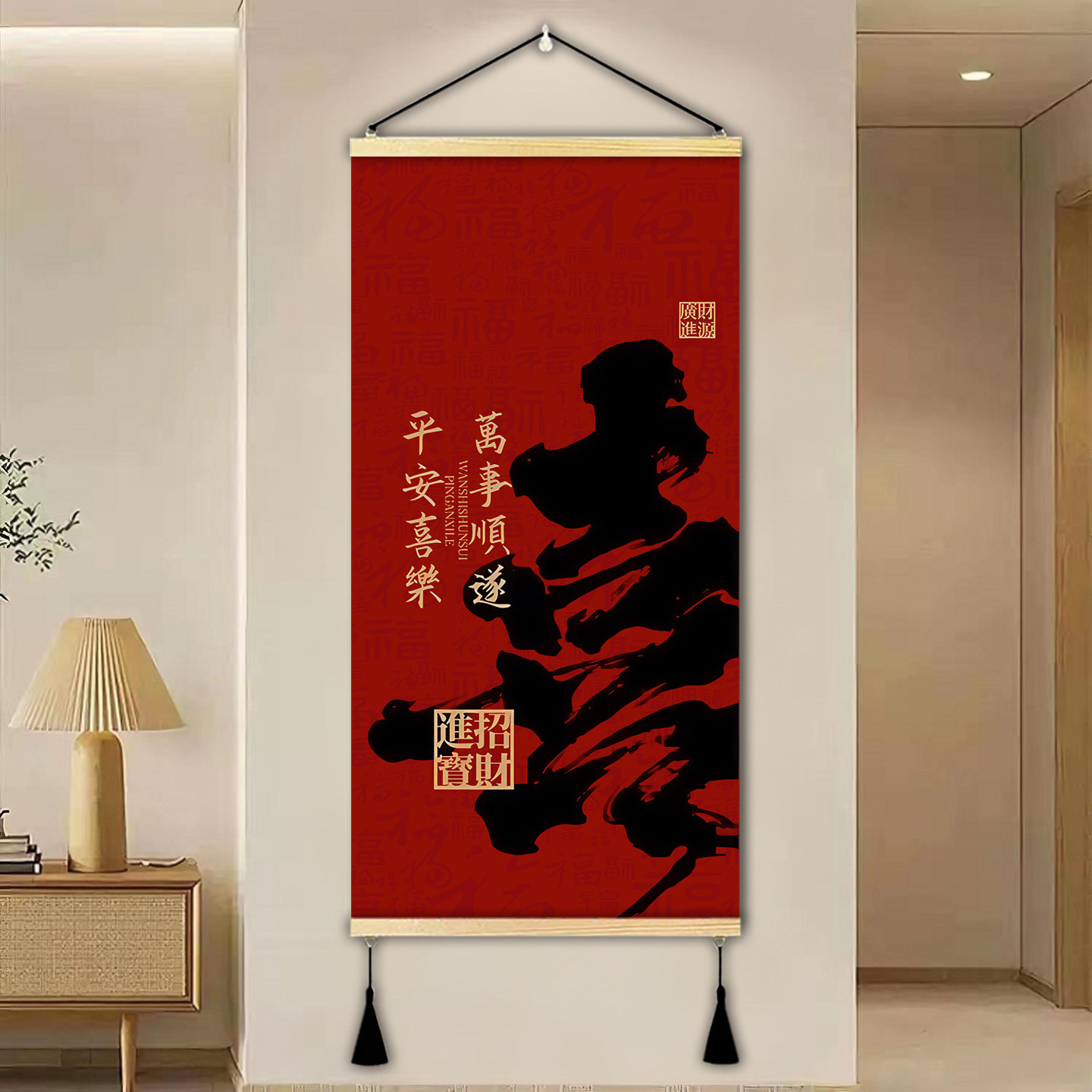 新中式平安喜乐玄关走廊装饰画万事顺遂书房卧室墙画客厅福字挂画