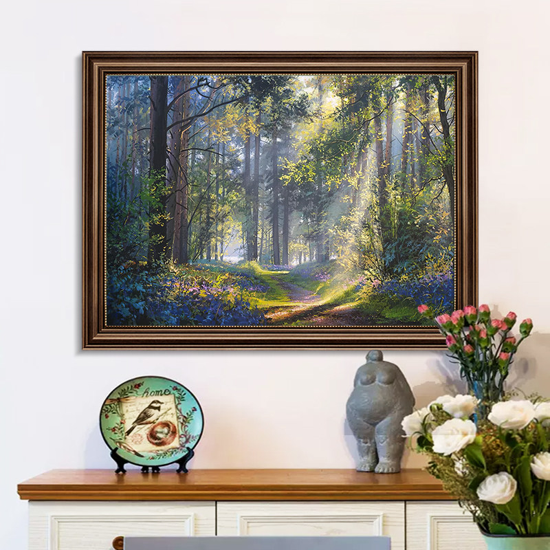 夏日风景油画客厅玄关挂画欧洲森林手绘肌理画卧室餐厅走廊装饰画