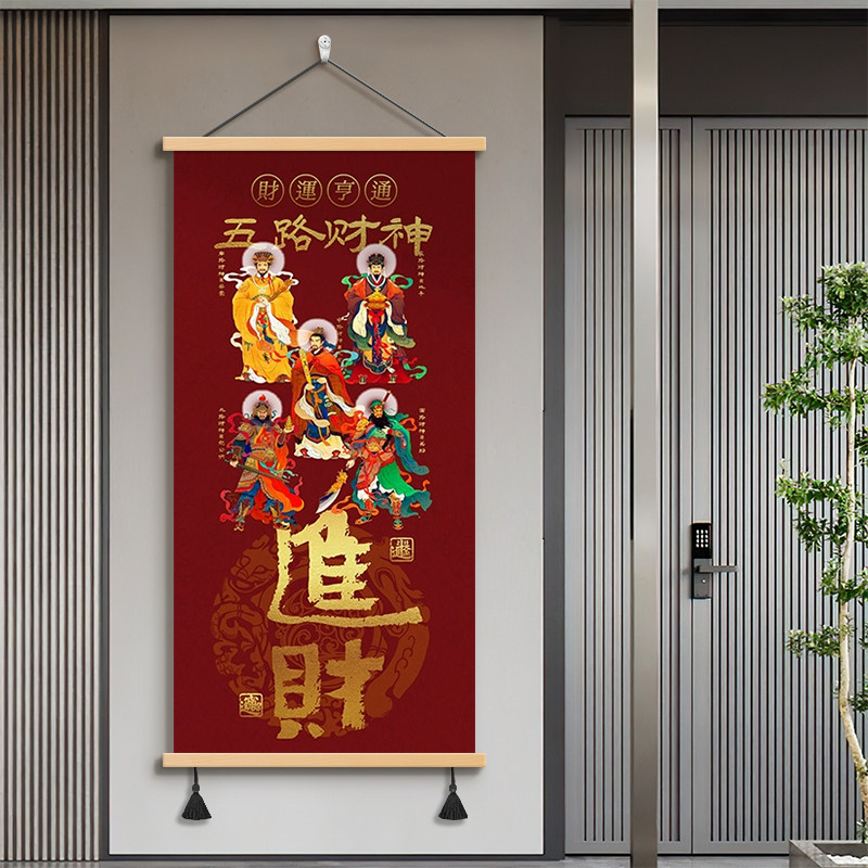 新中式五路财神玄关走廊装饰画进财书房中堂墙画财源广进客厅挂画