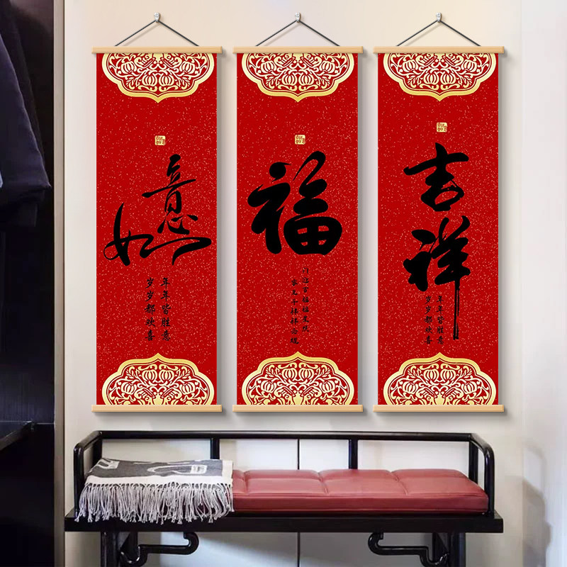福字红色喜庆挂画走廊玄关入户装饰画客厅书房挂轴天下第一福字画