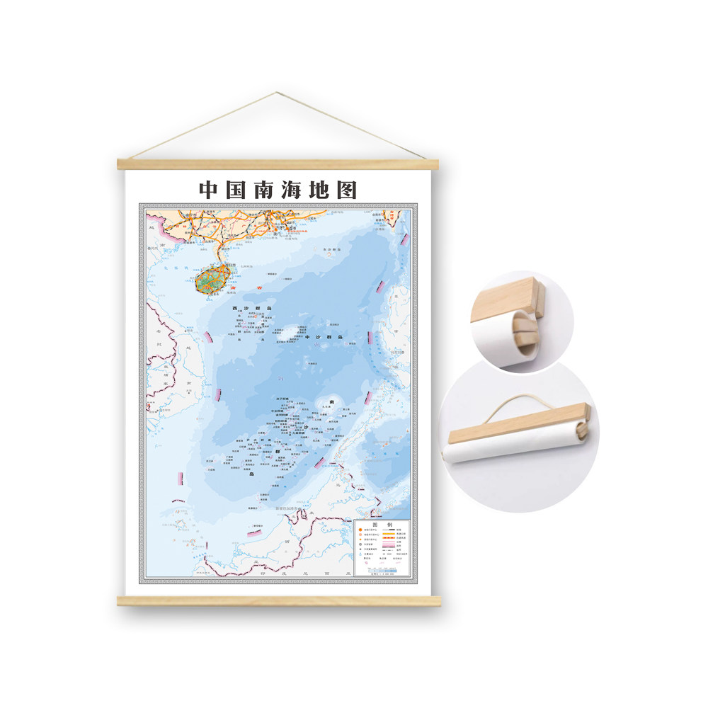 新版南海地图实木挂画中国书房地理办公室餐厅教室走廊装饰画墙画