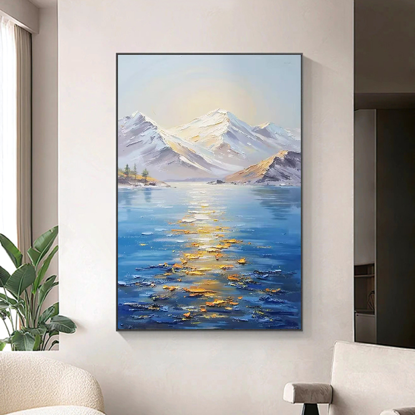 纯手绘油画日照金山雪山河流风景画肌理感客厅餐厅挂画走廊装饰画