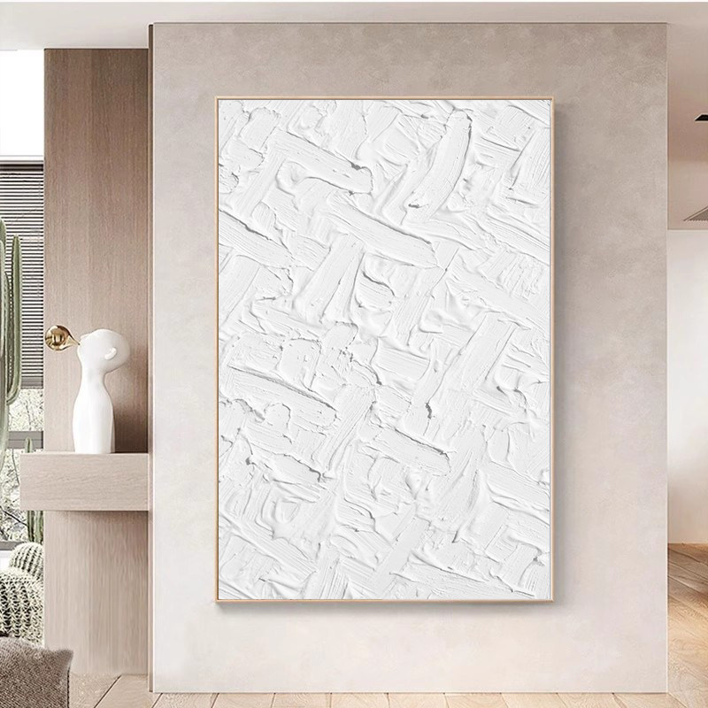 纯白色意式简约北欧风极简喷绘油画肌理感玄关走廊装饰画抽象挂画