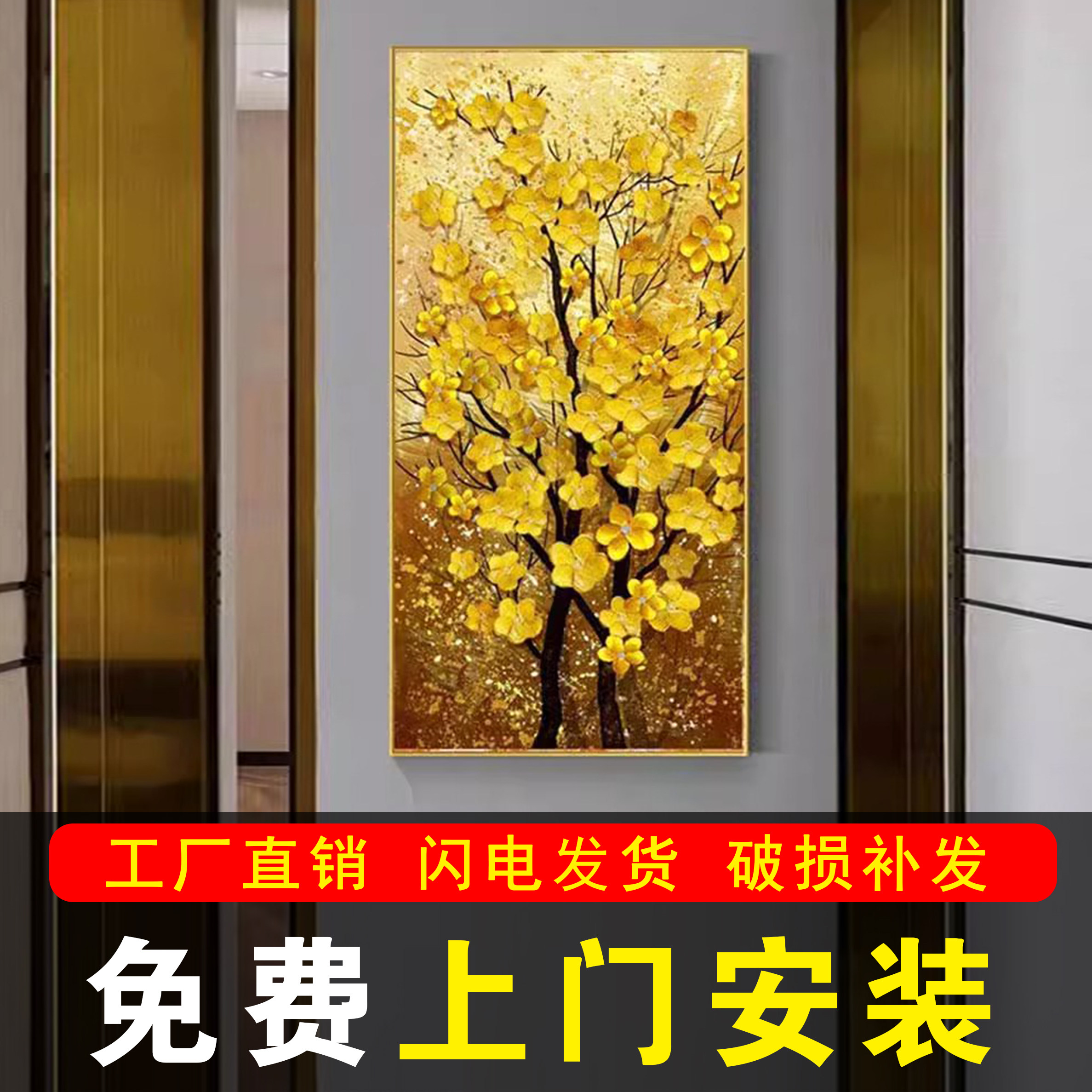 包安装入户画旺运发财树玄关画走廊装饰画轻奢高级感挂画客厅壁画