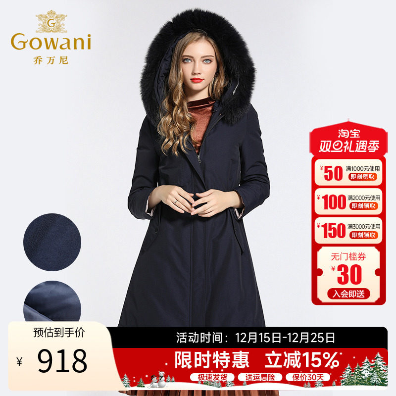 乔万尼商场冬季新款欧洲站两面穿收腰保暖大毛领派克羽绒服女中长