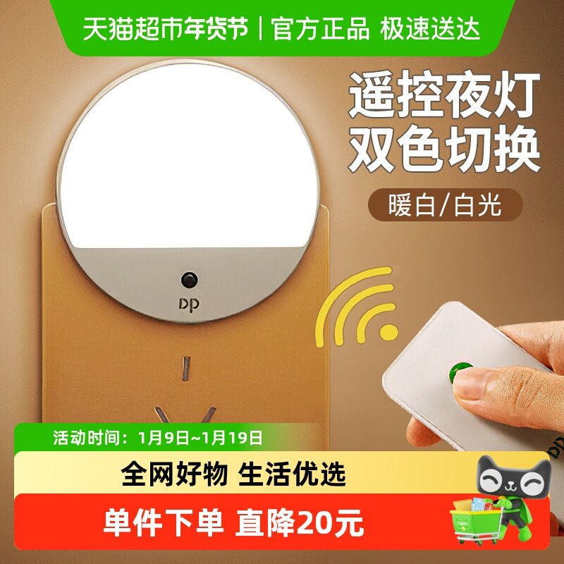 久量遥控小夜灯婴儿喂奶护眼卧室床头插电睡眠灯柔光双色 省电LED