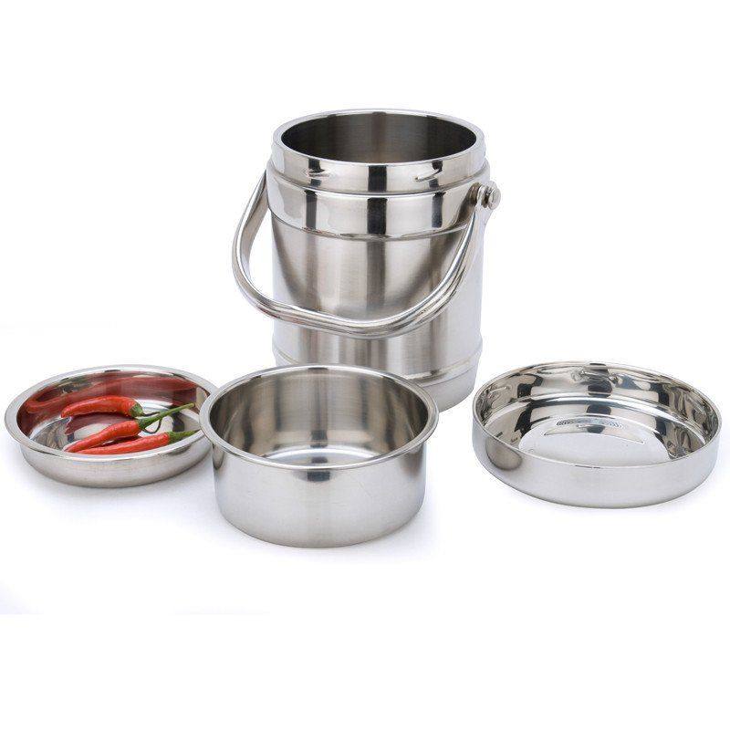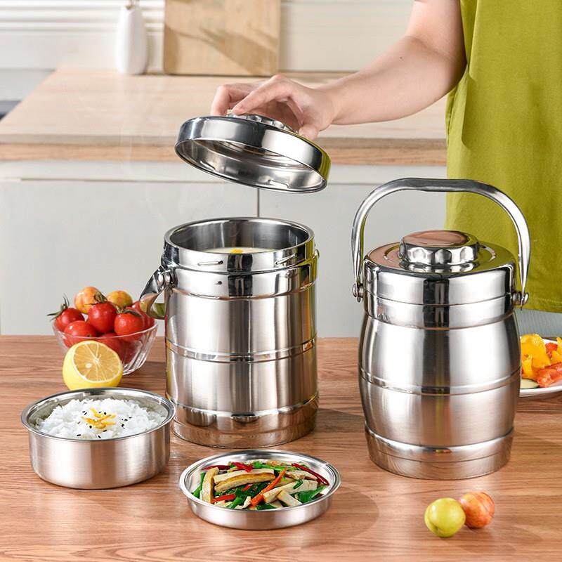 不锈钢保温提锅鼓型真空饭桶饭篮大容量2/3层饭盒学生上班便当盒
