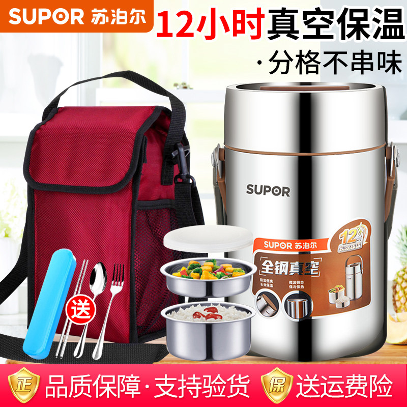 SUPOR/苏泊尔保温饭盒3层真空304不锈钢便当盒成人学生保温桶